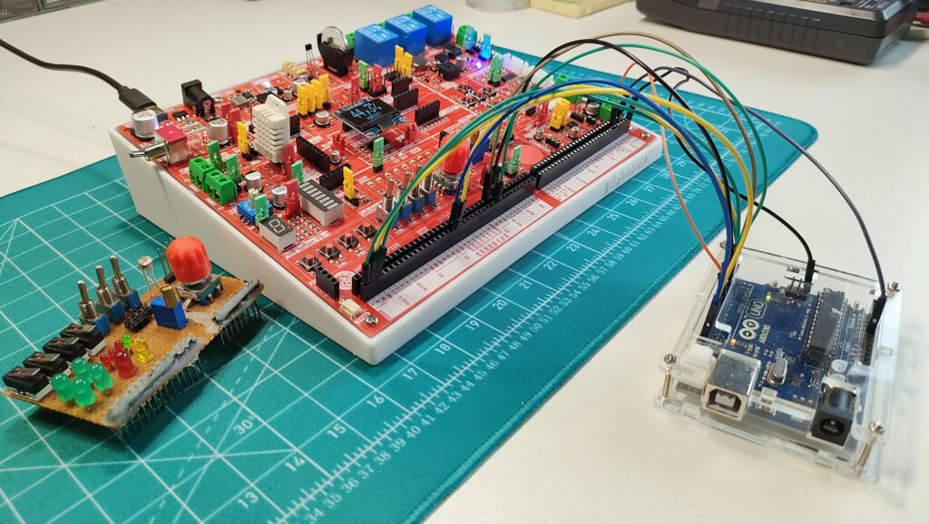Ogni pin femmina del connettore è duplicato per ogni I/O (sensore, LED, ecc.), consentendo una connessione diretta, ordinata e con un’indicazione chiara della funzione associata.